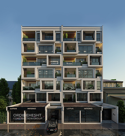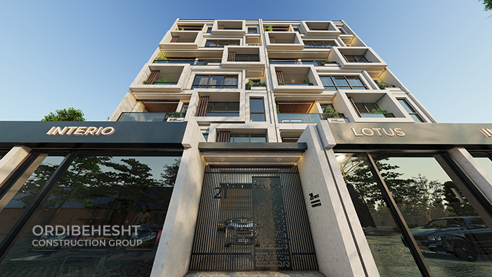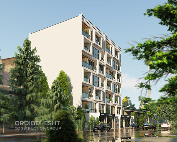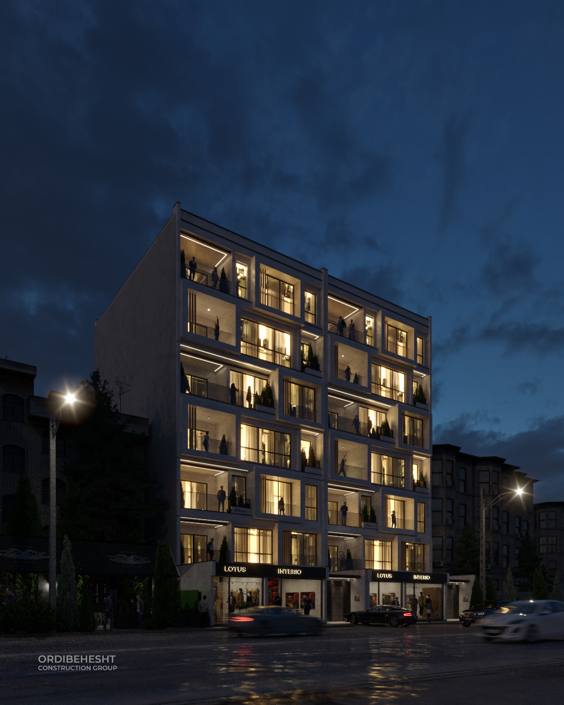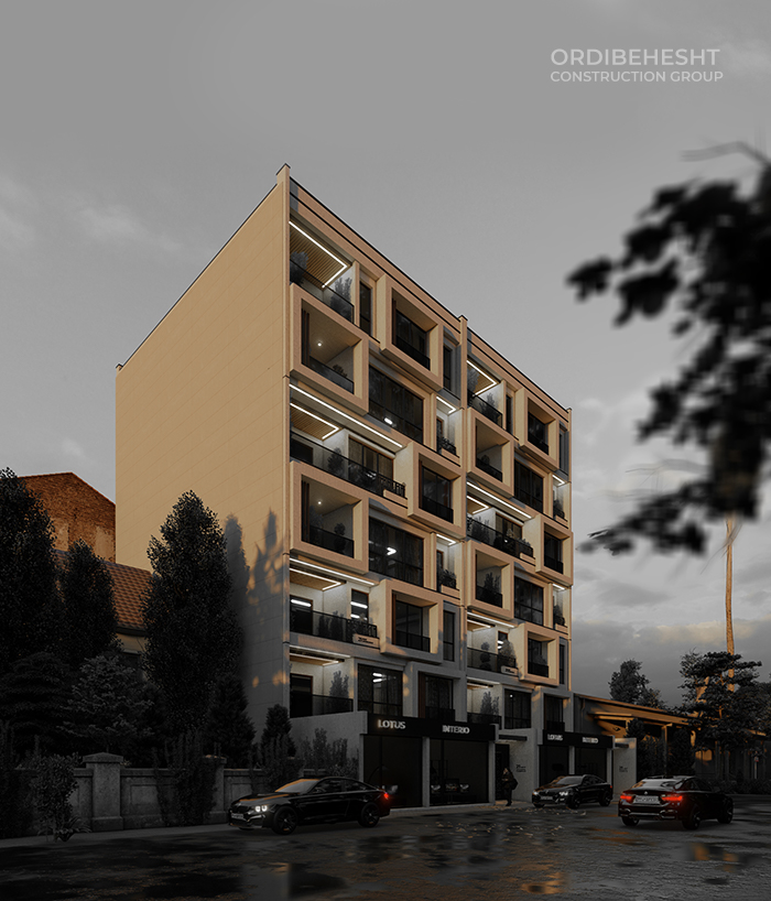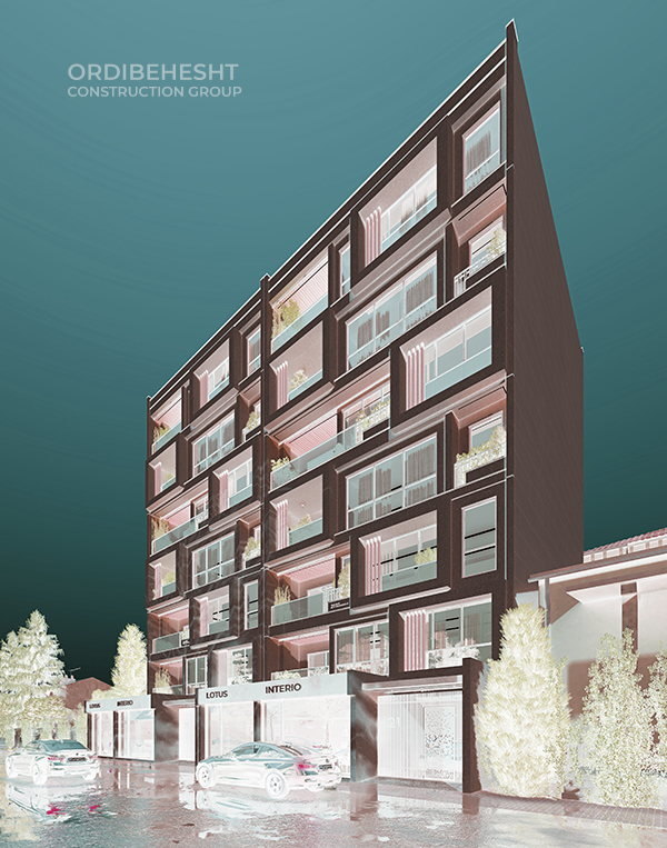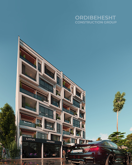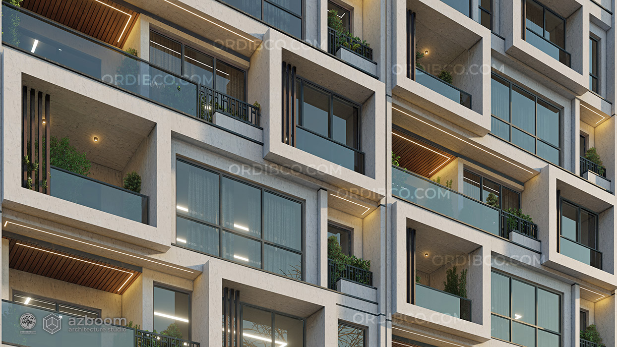 در طراحی نمای این مجموعه، تلاش شده است تا با ایجاد بُعد و عمق، ترکیبی از پویایی و هویت معاصر در سطح شهری به نمایش گذاشته شود. حجمهای منظم و متقاطع، سایهاندازیهای کنترلشده و ترکیب لایهبندیهای متریالی، نمایی زنده و پرتحرک را شکل دادهاند که تحت تأثیر نور طبیعی، جلوهای متغیر و متناسب با ساعات مختلف روز پیدا میکند. این بازی با احجام و خطوط، علاوه بر ایجاد خوانایی در نما، بر جداسازی بصری دو ساختمان نیز تأکید دارد، درحالیکه درک کلی مجموعه را به عنوان یک واحد هماهنگ حفظ میکند.