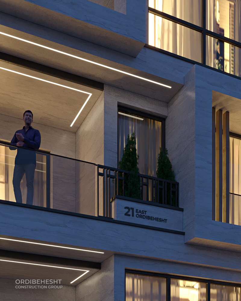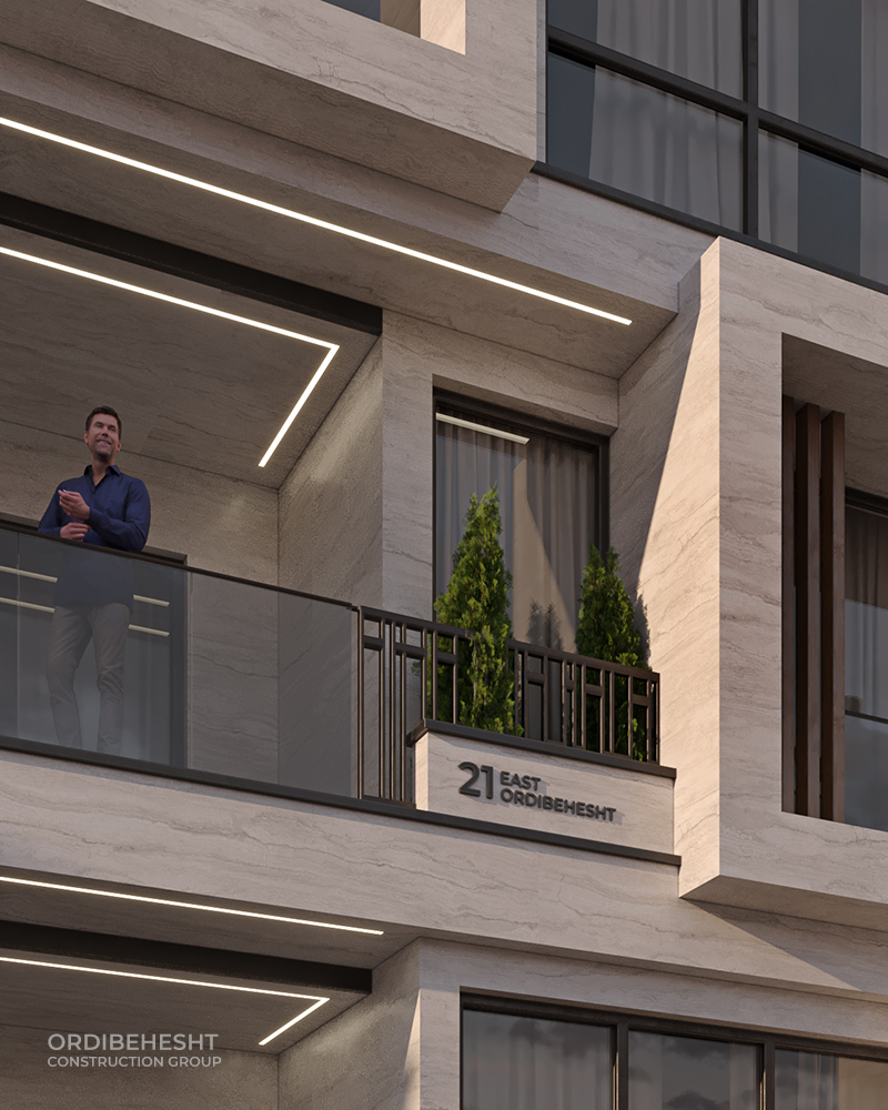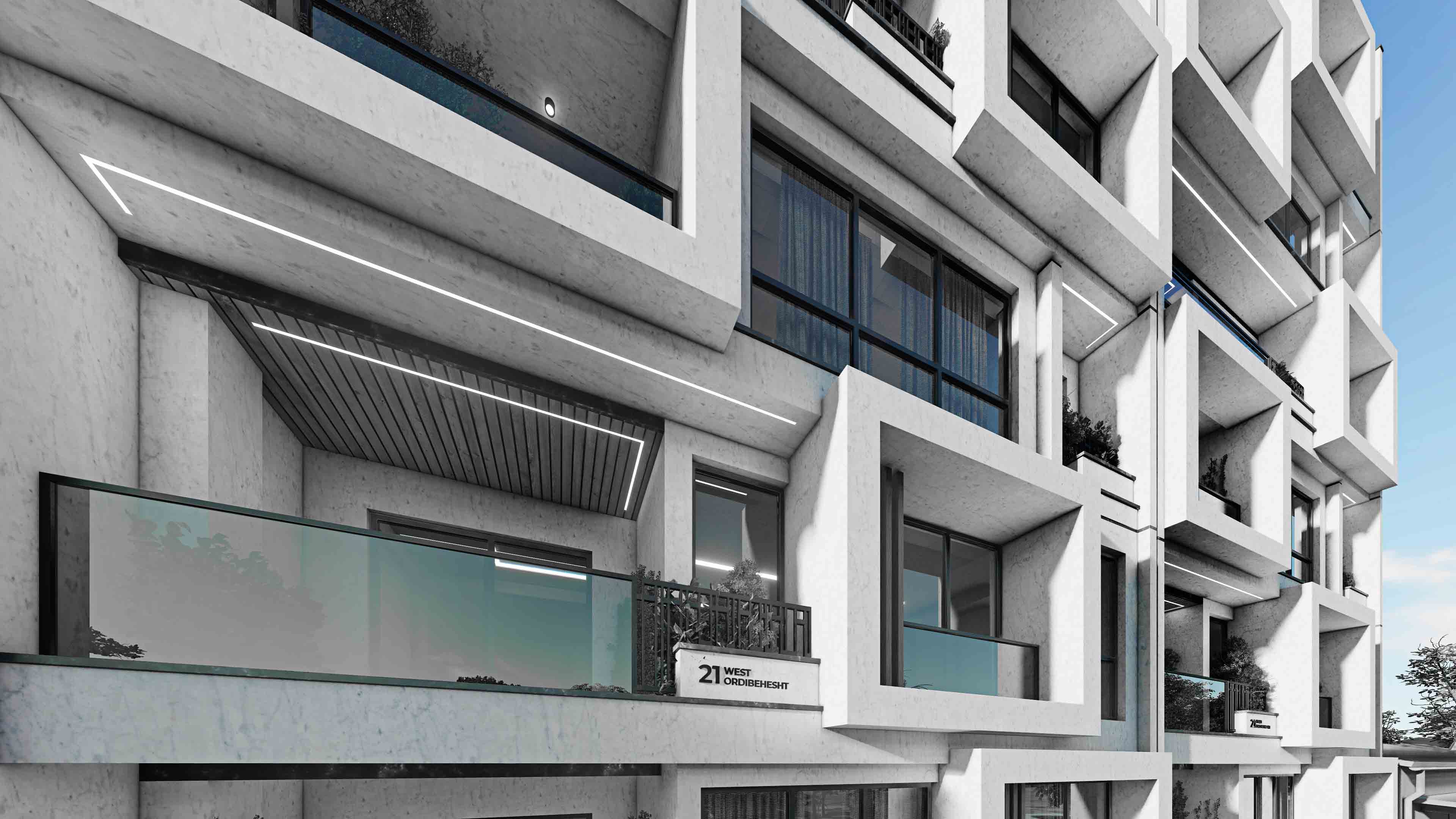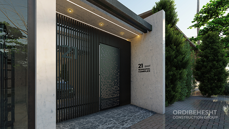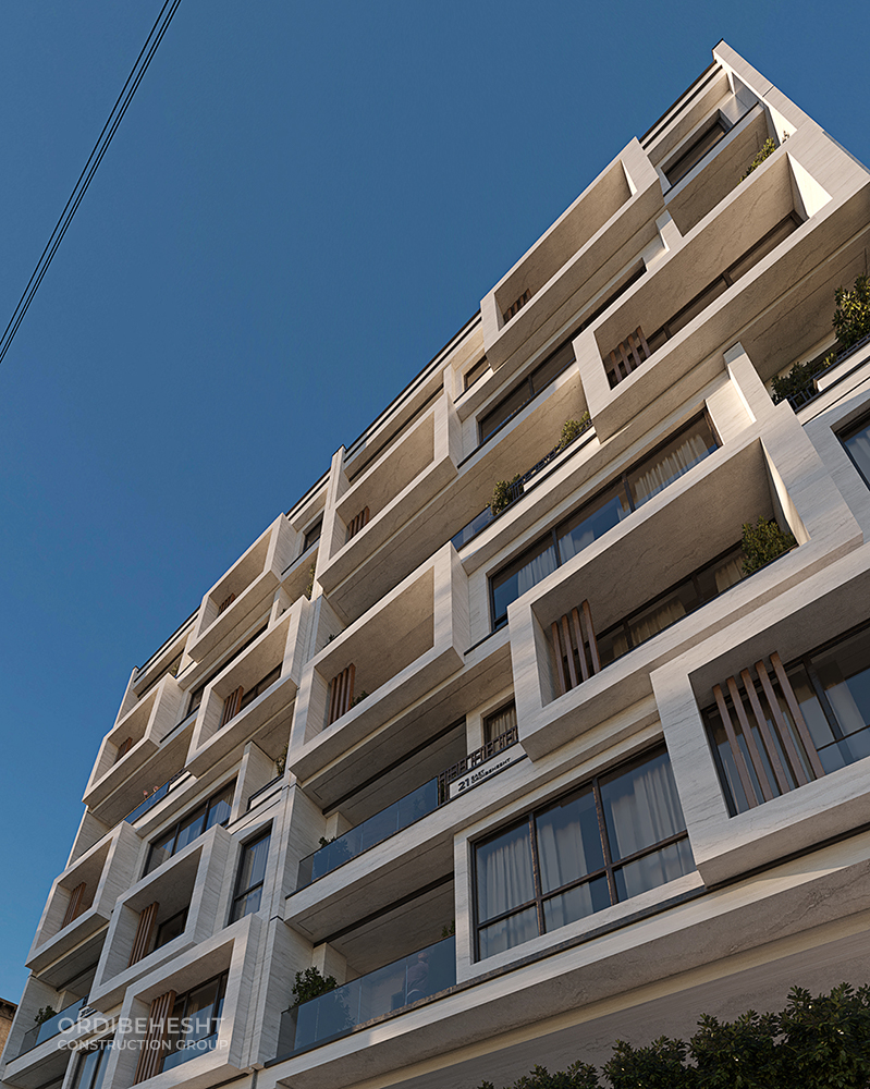 مجتمع مسکونی ۲۱، ترکیبی از دو ساختمان دو قلوی مستقل، با رویکردی مدرن در طراحی و سازماندهی فضایی، تجربهای متفاوت از سکونت شهری را ارائه میدهد. این مجموعه شامل دو بلوک شرقی و غربی است که هر یک دارای ۶ طبقه و در مجموع ۶ واحد مسکونی هستند. تفکیک ورودیهای هر ساختمان، علاوه بر افزایش حس حریم خصوصی، به ساکنان اجازه میدهد تا بدون تداخل، تجربهای اختصاصی از فضاهای ورودی و مشاعات خود داشته باشند.